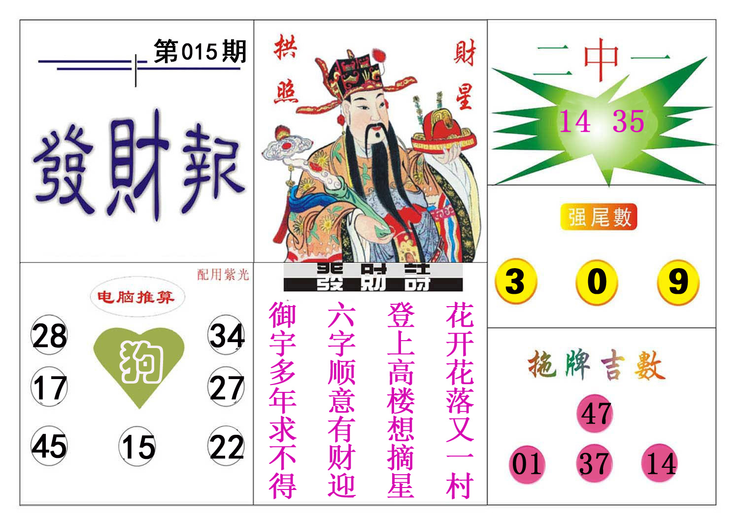 | 015期财神方位 东南-正东-正北 开 ?? |