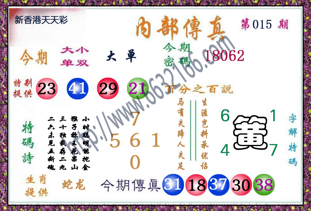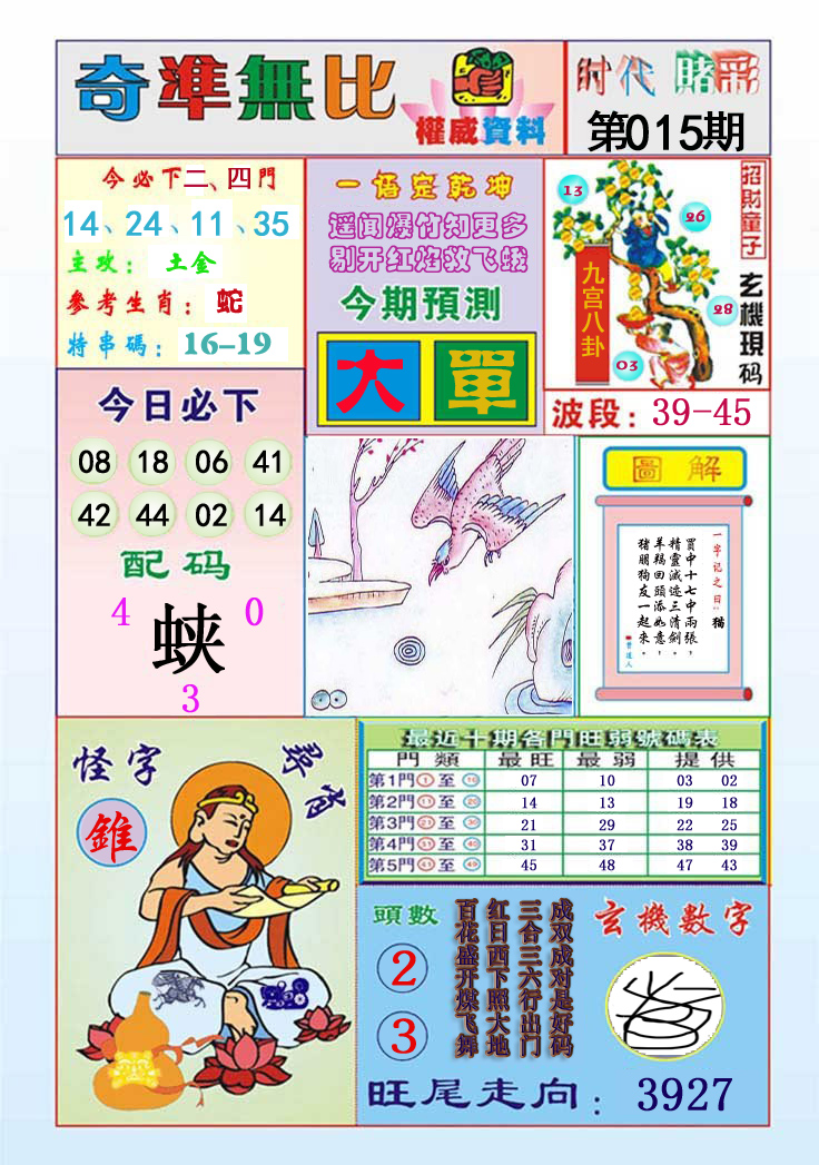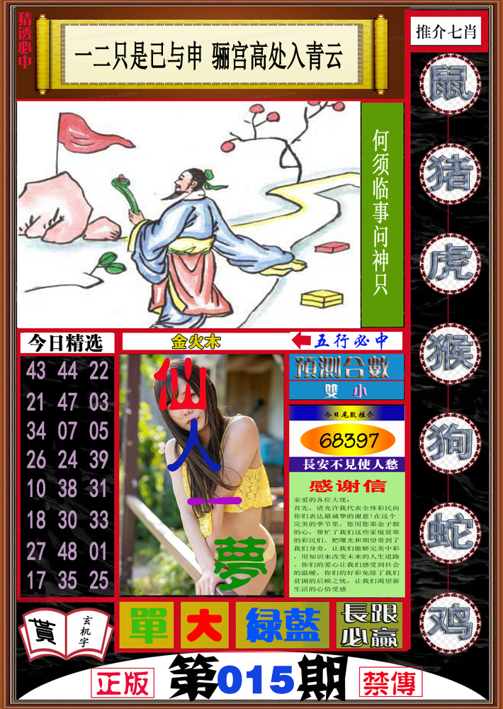 | 015期: (狗44)(牛41)(兔39)(鼠30) |