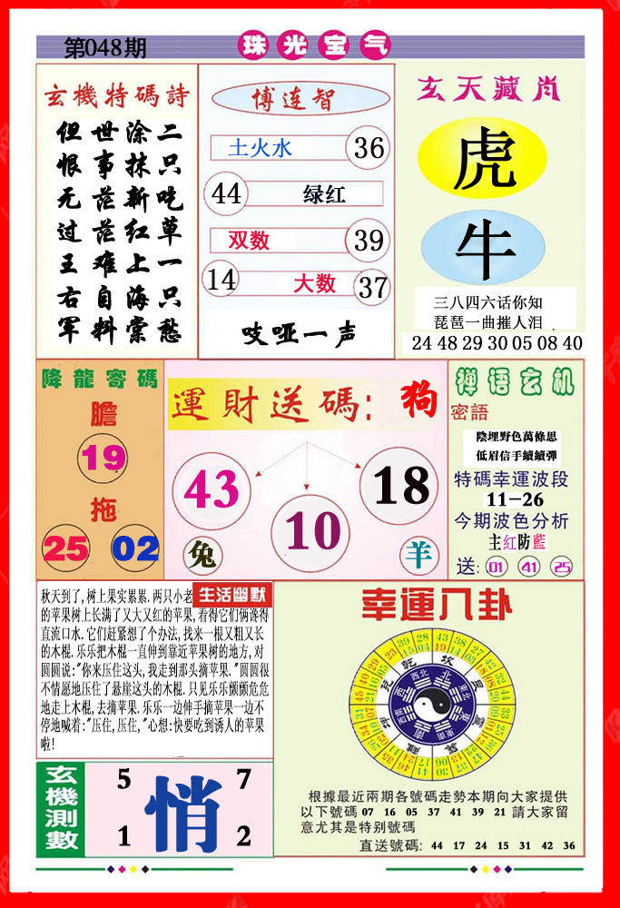 | 048期财神方位 东南-东北-正南 开 ?? |