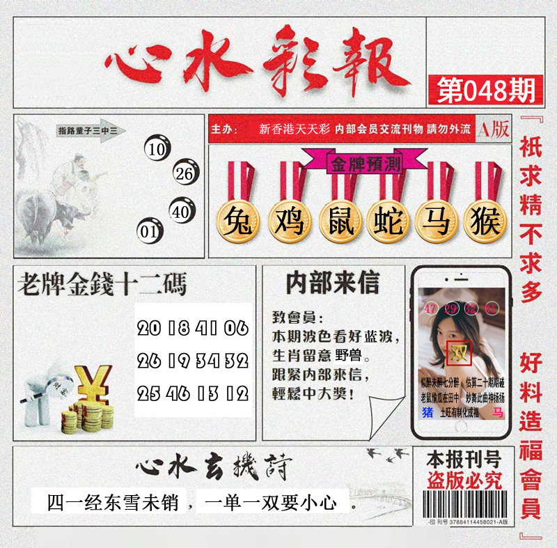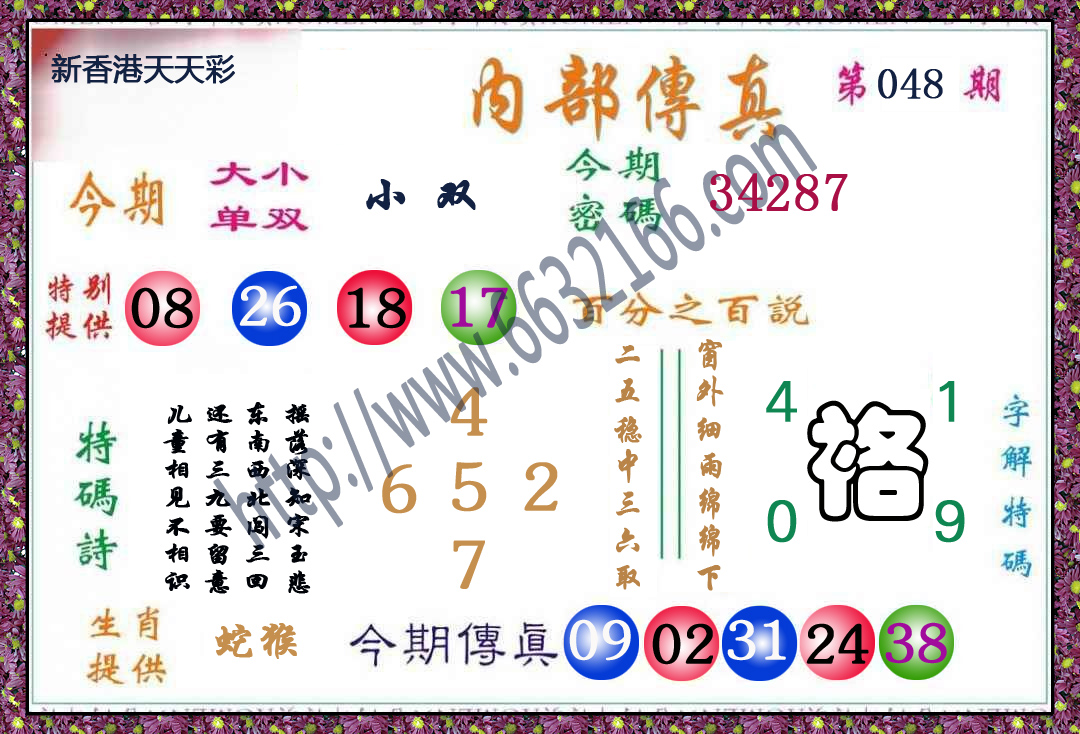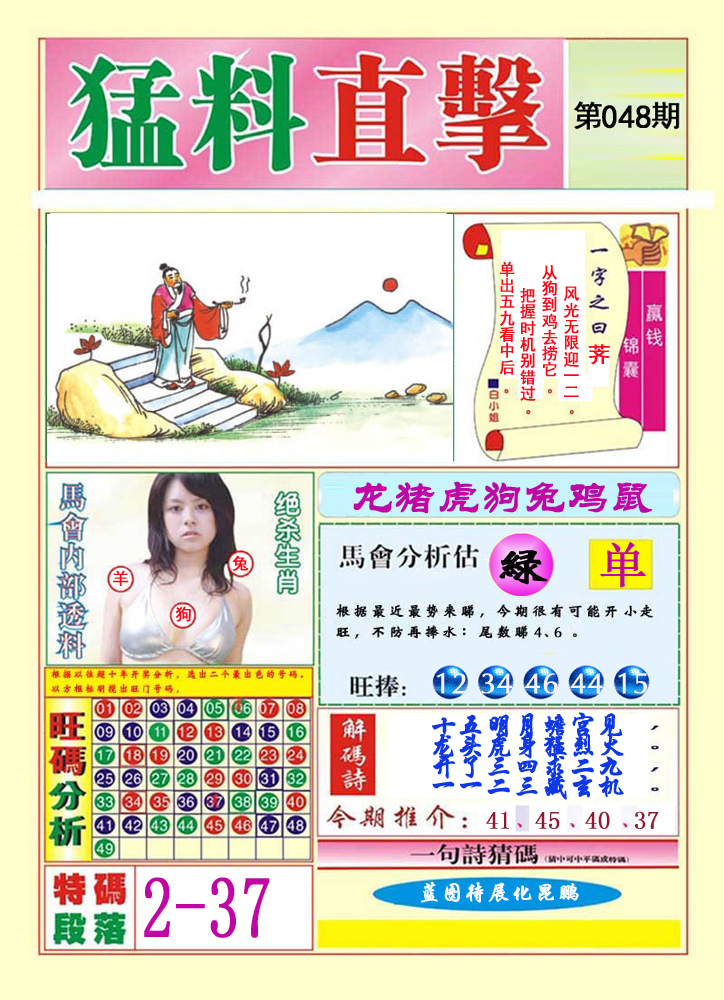 | 048期:跟我包三肖 | 048期:特码在其中 |