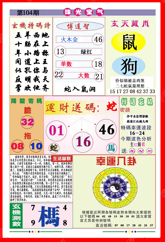 | 104期:幽默解特码 | 104期:12码已连准 |