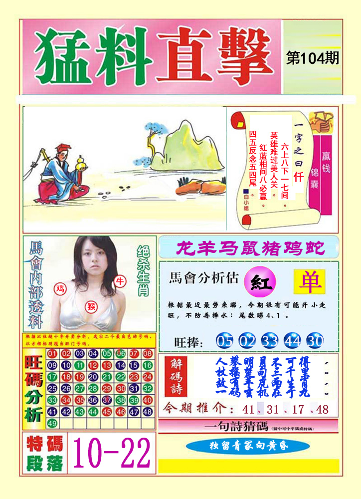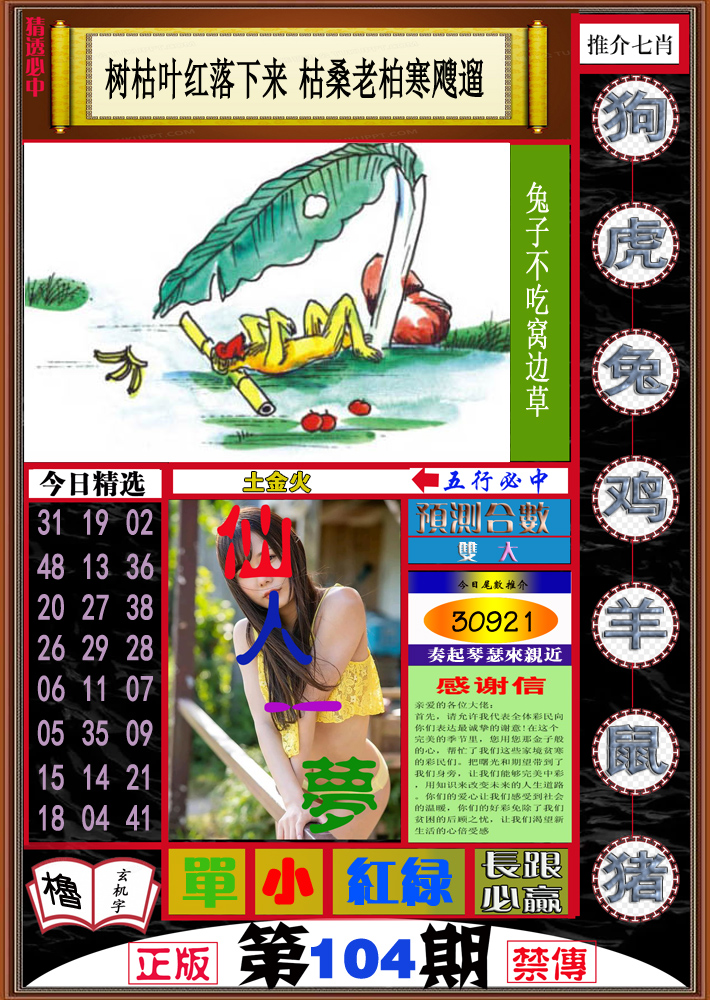 | 102期: (虎17)(狗33)(羊48)(龙39) |