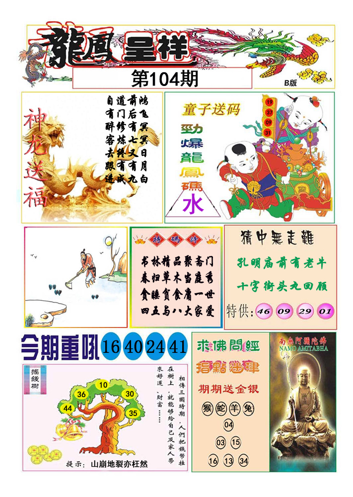 | 103期: (龙15)(鸡34)(猴11)(兔16) |