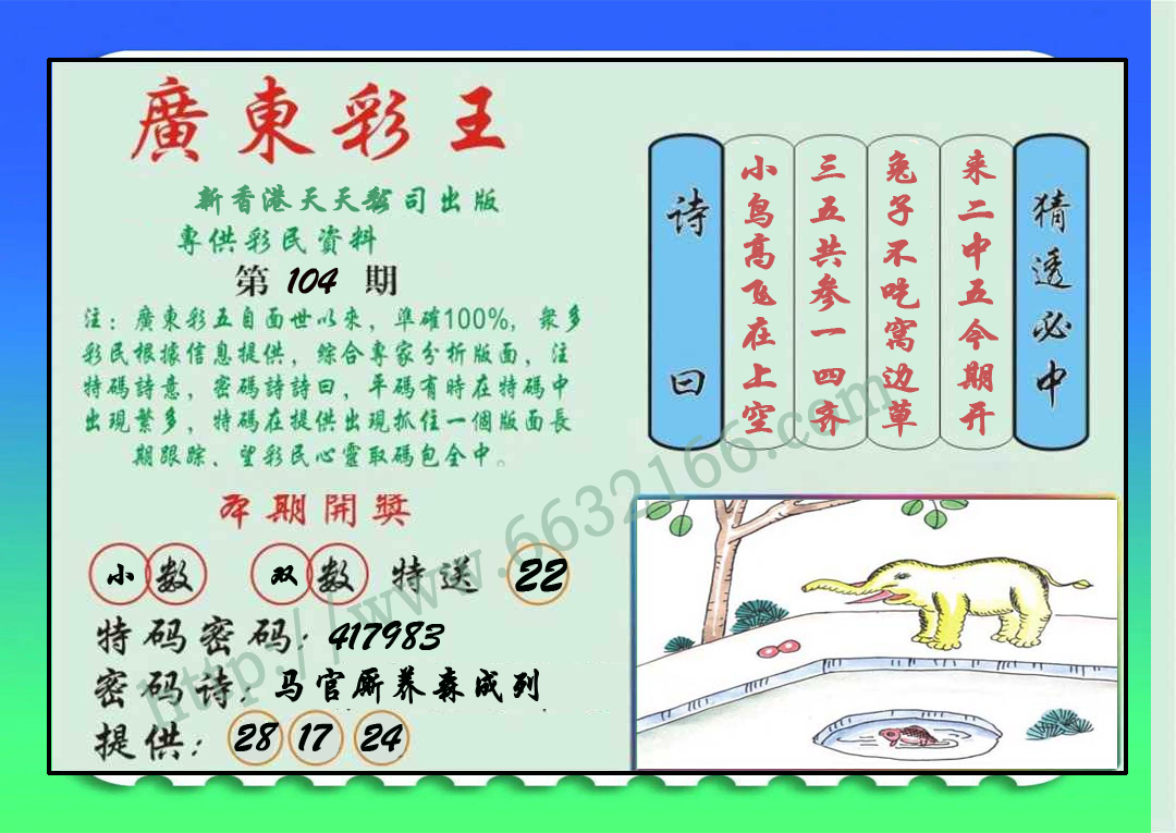 | 104期: (马13)(猴47)(狗45)(羊36) |